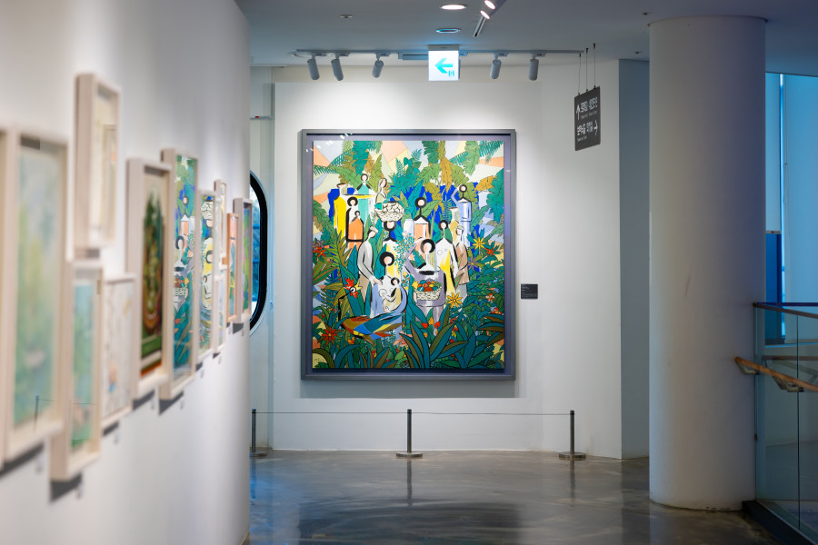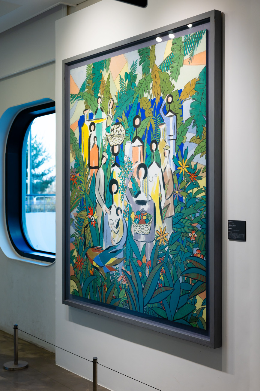 〈식물원의 가족〉(2025)은 이성근 작가가 서울식물원에 기증한 작품으로, 한지에 수묵채색으로 표현된 대형 회화입니다.